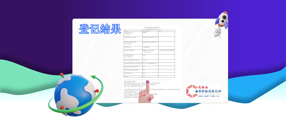 化妆品原料报送登记网 化妆品原料报送登记网是专业提供原料报送咨询服务及原料信息登记服务网络平台。 |