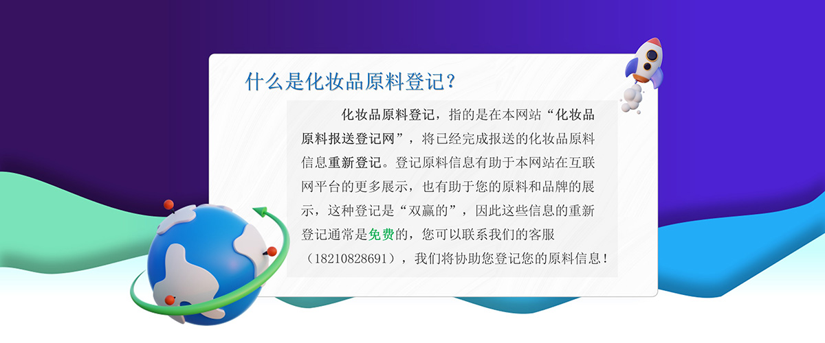 如需化妆品原料登记,请联系客服【18210828691(微信同)】吧!